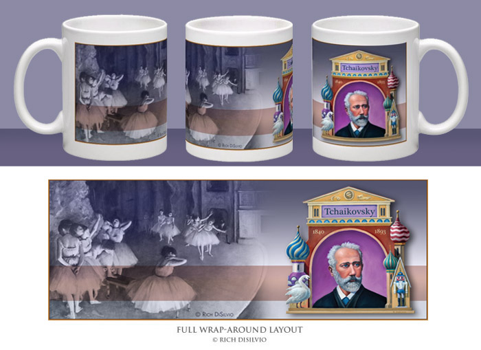 | The Peter Tchaikovsky Mug was originally designed as part of the Pantheon of Composers collection, which featured artwork by Rich DiSilvio of great composers in memorials. The collection appeared on collector plates and mugs, among other items, and retailed at Lincoln Center and many Performing Arts centers throughout America and Europe.